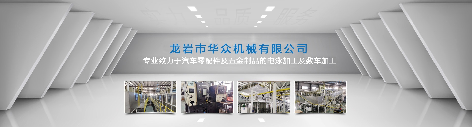 龍巖市華眾機械有限公司網站上線啦!!! 龍巖市華眾機械有限公司前身為龍巖市杰瑞特工貿有限公司,成立于2010年12月。新廠座落于福建省龍巖市新羅區東寶工業集中區,注冊資本500萬元,占地面積約27,000平方米,員工60多人 。公司擁有涂裝行業10年以上工作經驗的技術團隊。2018年8月經NSF-ISR評估獲得IATF16949質量管理體系認證通過并取得證書。 現專業致力于汽車零配件及五金制品的電泳加工及數車加工。